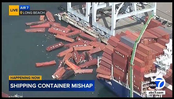 洛杉矶港口发言人阿特·马罗昆 (Art Marroquin) 表示,这艘名为密西西比号的船在上午 9 点前停泊在G号码头,突然发生堆垛倒塌及大量集装箱落入水中。